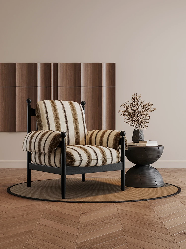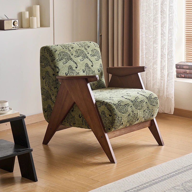 フレンチヴィンテージデザインの無垢材一人用ソファチェア - 家庭用新作!小さなリビングやバルコニーにぴったりのリラックスチェア。おしゃれで機能的、あなたの空間を引き立てます!