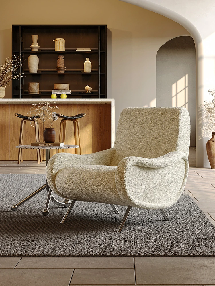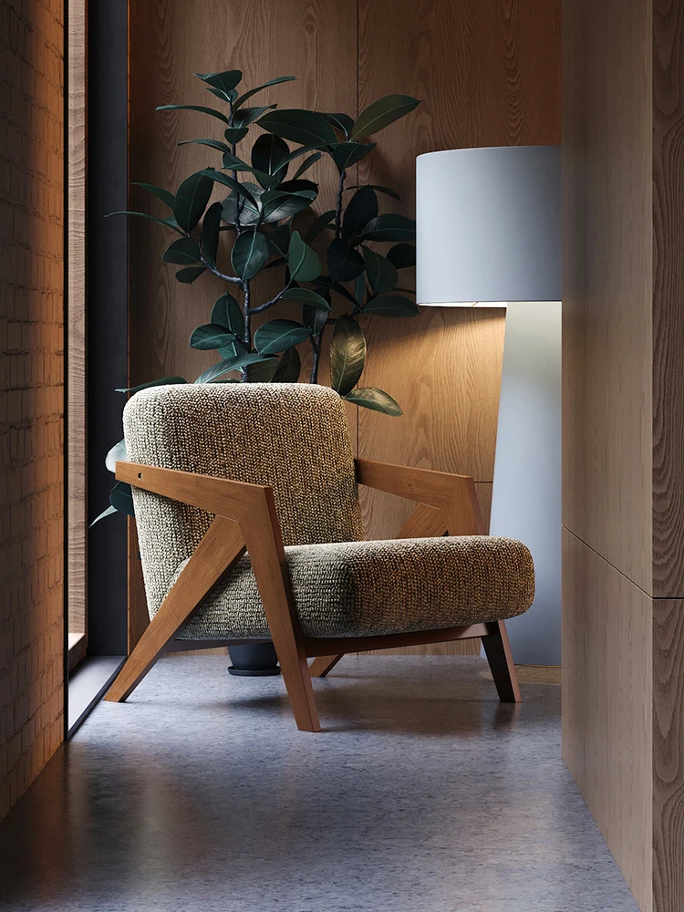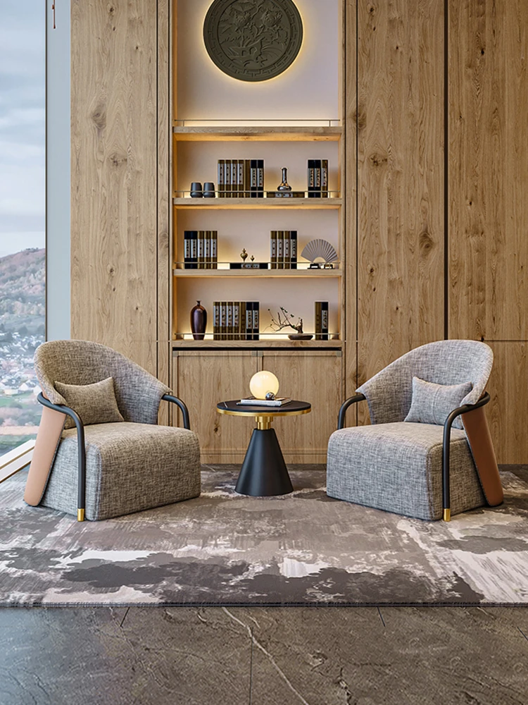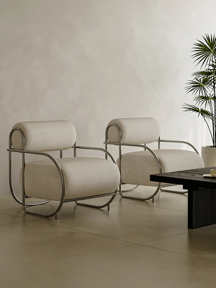 イタリアンミニマル粗麻ソファチェア|ラグジュアリーで高級感あふれるデザイン|民宿・ホテル・クラブに最適な一人用リラックスチェア