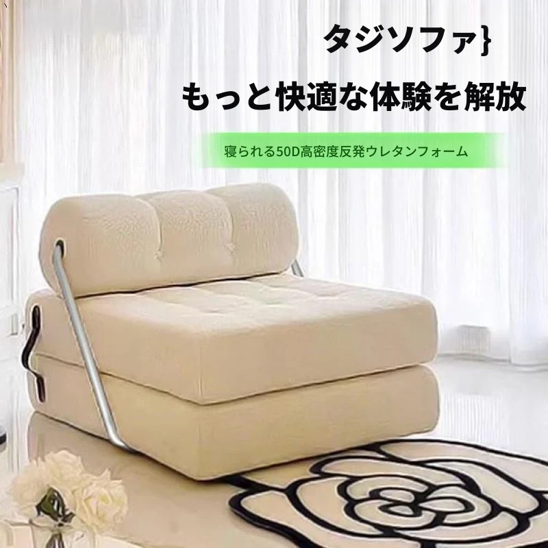 一人用ソファ 小型リビングに最適!豆腐型タジンソファベッド 折りたたみ式で2WAY使用可能なクリーム風モジュラーラクラクソファ