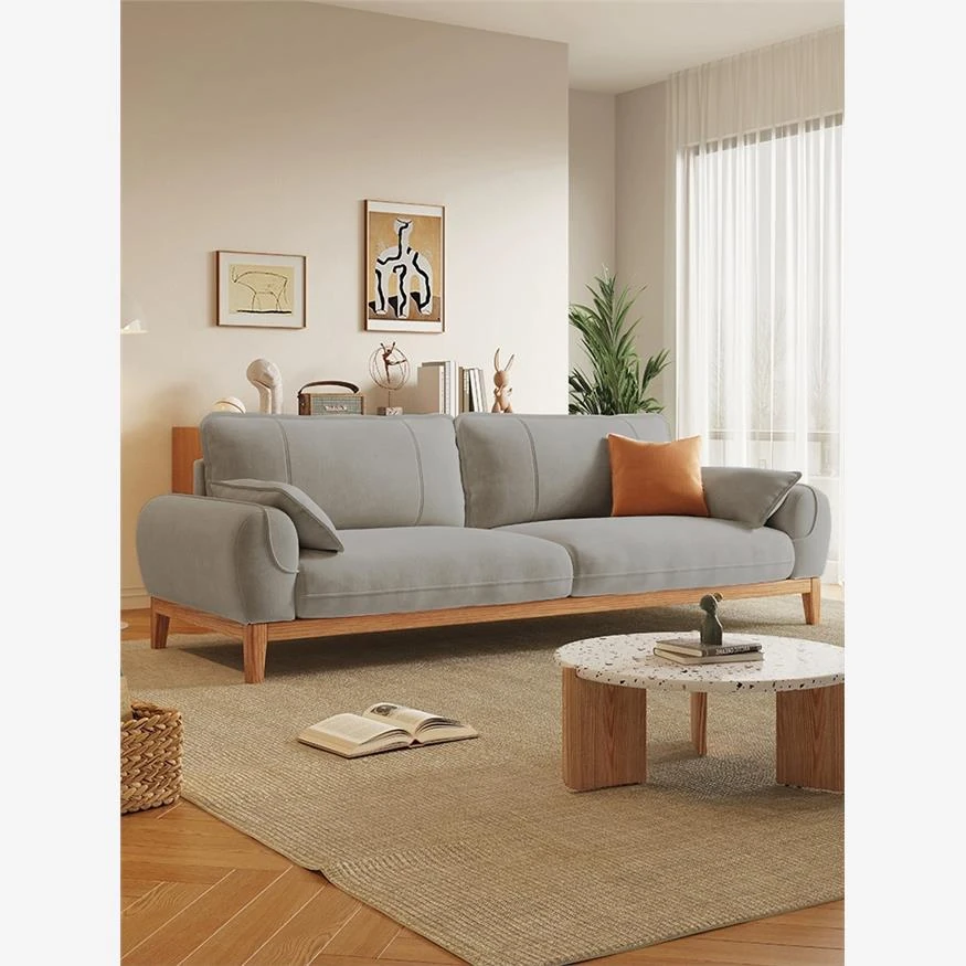 送料無料!新彊発の北欧侘寂スタイル、ナチュラルウッド風の実木ソファ。小さなリビングにぴったりなモダンミニマリストデザインで、心地よいダブルフランネル生地を使用。おしゃれで快適な空間を演出します!