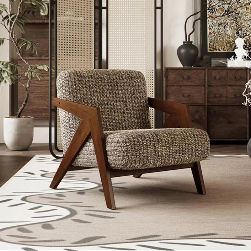 侘寂風デザインのホテルソファチェア|クリエイティブなリラックス一人掛け椅子|民宿やカフェ、接客スペースに最適な休息用家具!おしゃれで落ち着いた雰囲気を演出します。