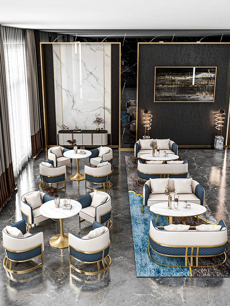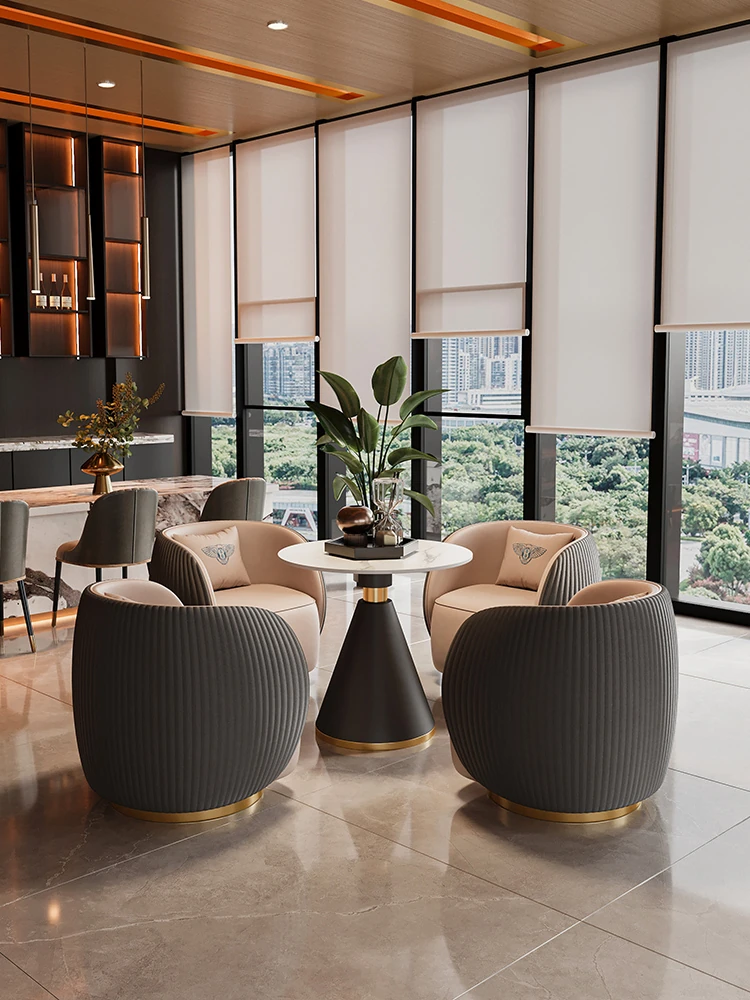 最新の軽奢モダンデザイン!不動産営業所やホテルに最適な接客用テーブル&チェアセット。美容院やビジネス会議、休憩エリアにもぴったりなソファと椅子のコンビネーションで、洗練された空間を演出します。