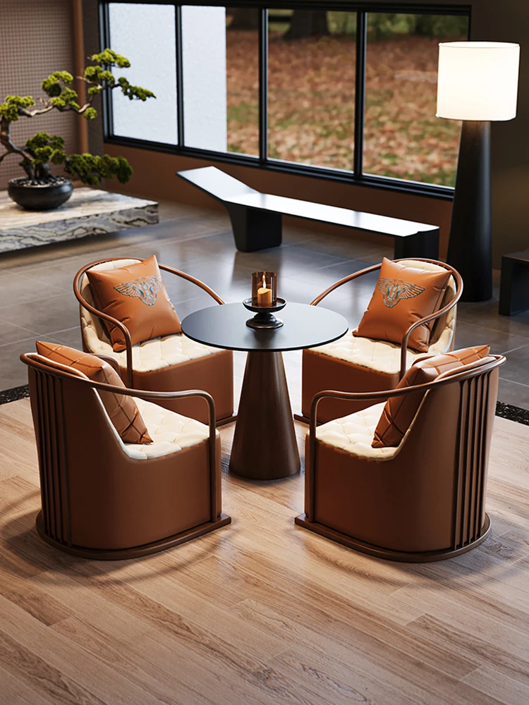 新中式禅スタイルの談話テーブル&チェアセット - リラックスできるホテルロビーや販売所に最適なビジネス会議用ソファチェア。心地よい空間でお客様をお迎えします。