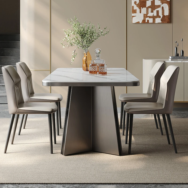 イタリアンライトラグジュアリー岩板ダイニングテーブル&チェアセット - モダンでシンプルなデザイン、小型住宅に最適な長方形超クリスタルストーン製の西洋料理用テーブル。