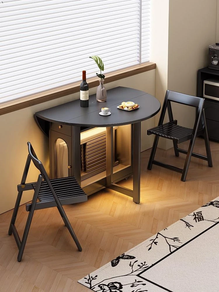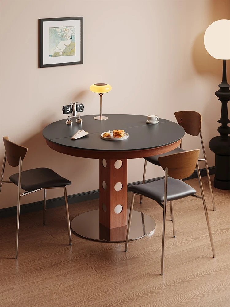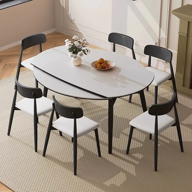 伸縮可能なダイニングテーブル|小型居住空間に最適な円形・方形両用折りたたみテーブル|モダンでシンプル、軽やかなラグジュアリー感を演出!