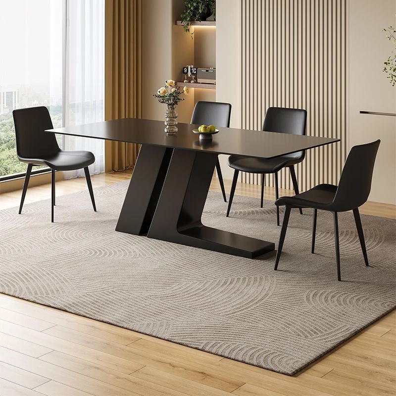 モダンなミニマリストのイタリアンスタイル、コンパクトな家庭用ダイニングテーブル&チェアセット - 小さいスペースに最適な長方形のブラックダイニングテーブル。シンプルで洗練されたデザインが、あなたのリビングをスタイリッシュに演出します!