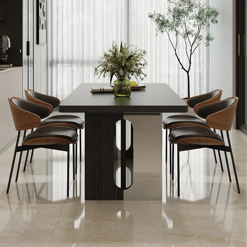 イタリアンミニマルモダンデザインの長方形ロックプレートダイニングテーブル&チェアセット - ヴィンテージ風の和の趣を感じる、ウォールナットカラーの家庭用食卓。洗練された美しさで、心安らぐ食事の時間を演出します。