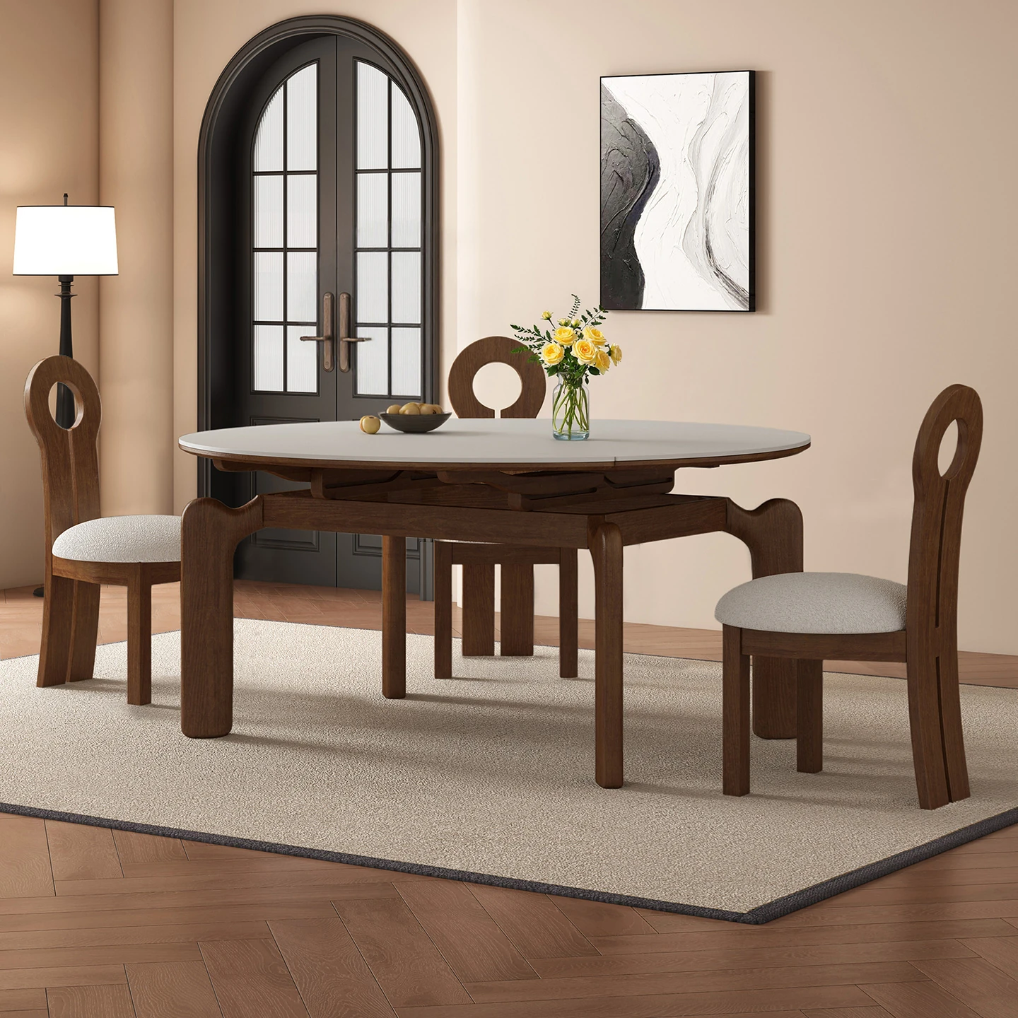 2025年新作!おしゃれな中古風の岩板ダイニングテーブル - 小さな空間にもぴったり、伸縮可能で丸型に変形!大象のような太腿デザインで安定感抜群、家族や友人との食事をさらに楽しく!