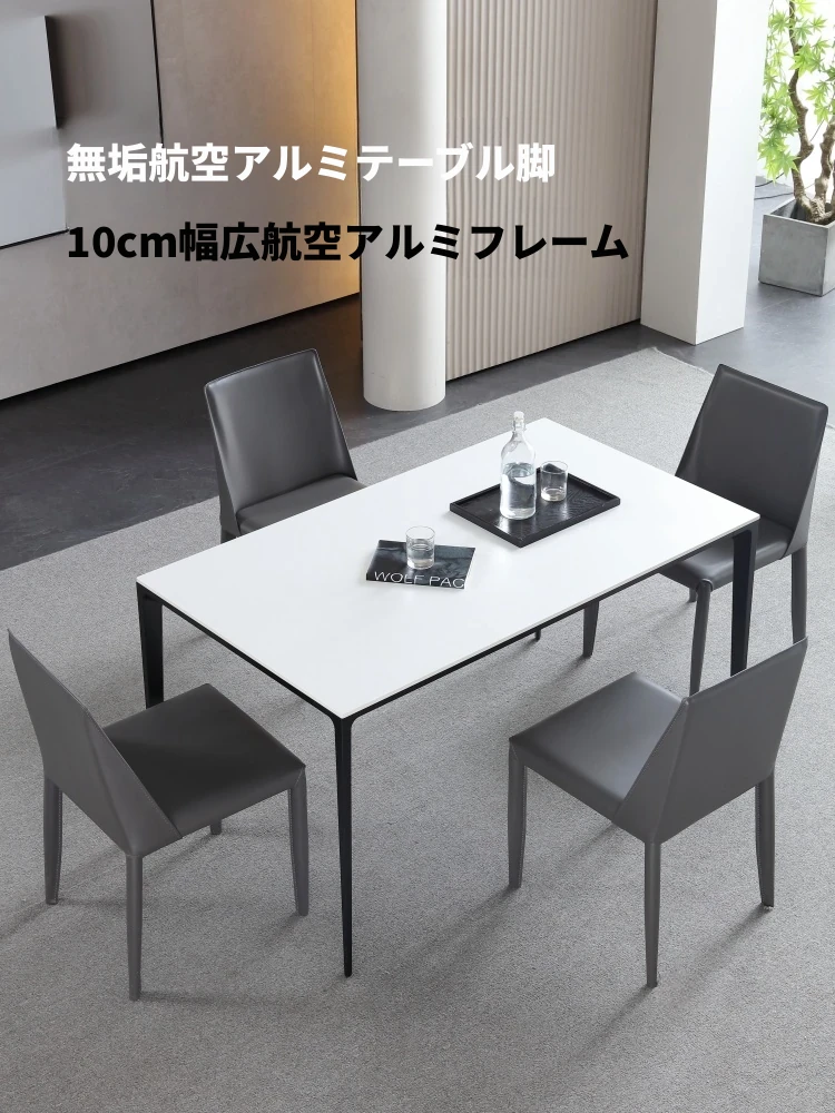 デリフォンの岩板ダイニングテーブル - アルミ合金製の純白色と極光黒、シンプルで洗練されたデザインは、小さなスペースにもぴったり。高級感あふれる軽やかなインテリアで、特別なひとときを演出します!