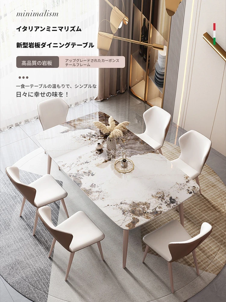 軽やかで贅沢な岩板製の西洋風ダイニングテーブル&チェアセット - モダンでシンプル、狭いお部屋にもぴったり!人気のリビングで素敵な食事時間をお楽しみください。
