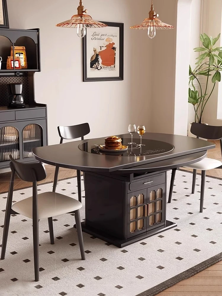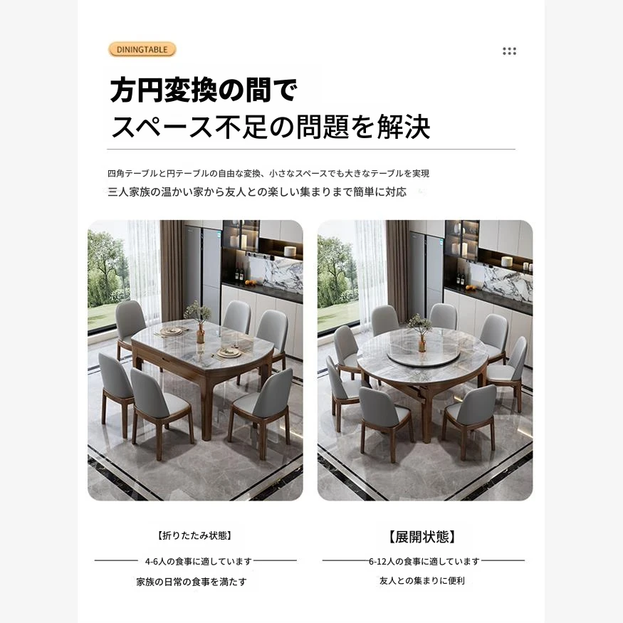 送料無料!新疆産の無垢材使用、モダンでシンプルなデザインの軽奢華ダイニングテーブル。小型住宅にもぴったりな伸縮・折りたたみ式、電磁調理器対応。家族団らんのひとときを演出します!