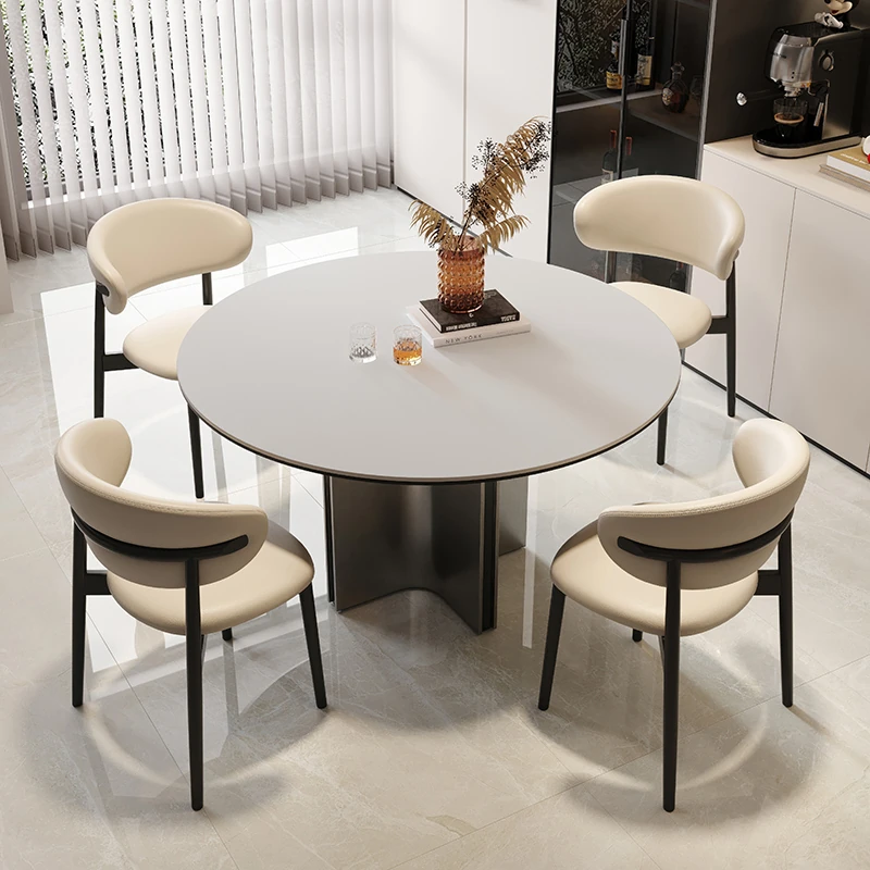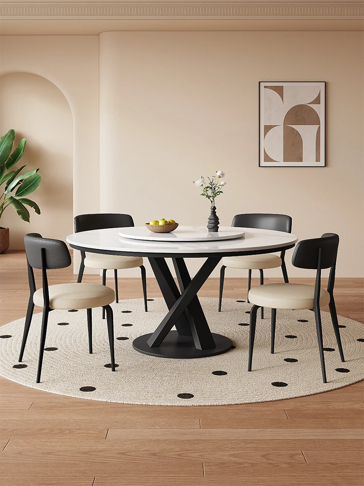 クロスステンレス製ラウンドテーブル - イタリアンミニマリズムの軽やかな贅沢、モダンでシンプルなデザインの家庭用食卓。高品質の岩板仕上げで、どんなインテリアにもマッチ!