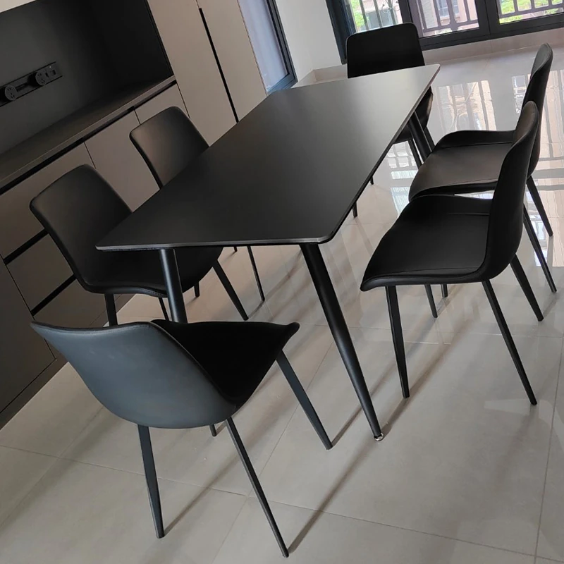 モダンミニマリスト長方形ダイニングテーブルセット|小型住宅に最適なシンプルでスタイリッシュな食卓椅子付き|おしゃれなインテリアを演出する岩板製テーブル