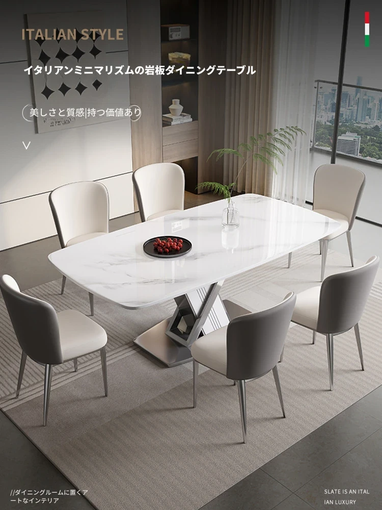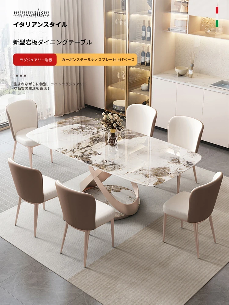 イタリアンラグジュアリー輝く岩板ダイニングテーブル&チェアセット、小型リビングに最適な長方形超晶石ウエスタンスタイルの食卓。洗練されたデザインで、食事のひとときを特別なものに!