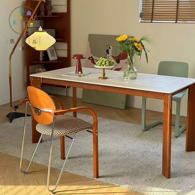 マカリュウ中古実木岩板ダイニングテーブル・インス風小型レトロ長方形食卓 - スタイリッシュなデザインで、限られたスペースを最大限に活用。おしゃれな食卓で、特別なひとときを!