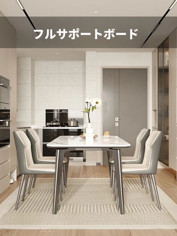 2025年最新款!軽奢モダンな岩板ダイニングテーブルセット - 小さなお部屋にも最適な長方形の西洋風ダイニングテーブル。シンプルでスタイリッシュなデザインで、食事の時間を特別に演出します!
