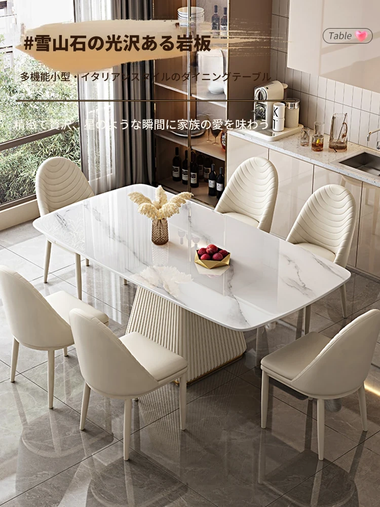 クリーム風軽奢岩板ダイニングテーブル&チェアセット|小型リビングに最適!現代的なシンプルデザインのホワイトダイニングテーブル|おしゃれな西洋レストラン風の家用テーブルで、食卓をもっと特別に!
