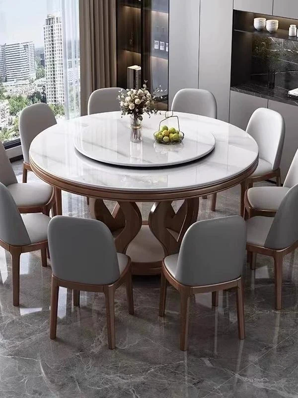 モダンな家用小型岩板ダイニングテーブルセット - シンプルな天然木製の円形テーブル、回転プレート付き!ホテルやレストランにも最適なスタイリッシュなデザイン。おしゃれで機能的な空間を演出します!