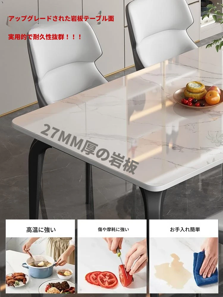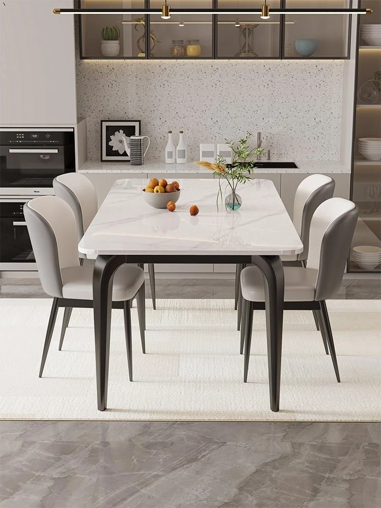 モダンでシンプルな岩板ダイニングテーブルセット - 大理石仕上げの軽奢華な長方形テーブル、小型住宅に最適!快適な食事空間を演出し、あなたの食卓を華やかに彩ります。
