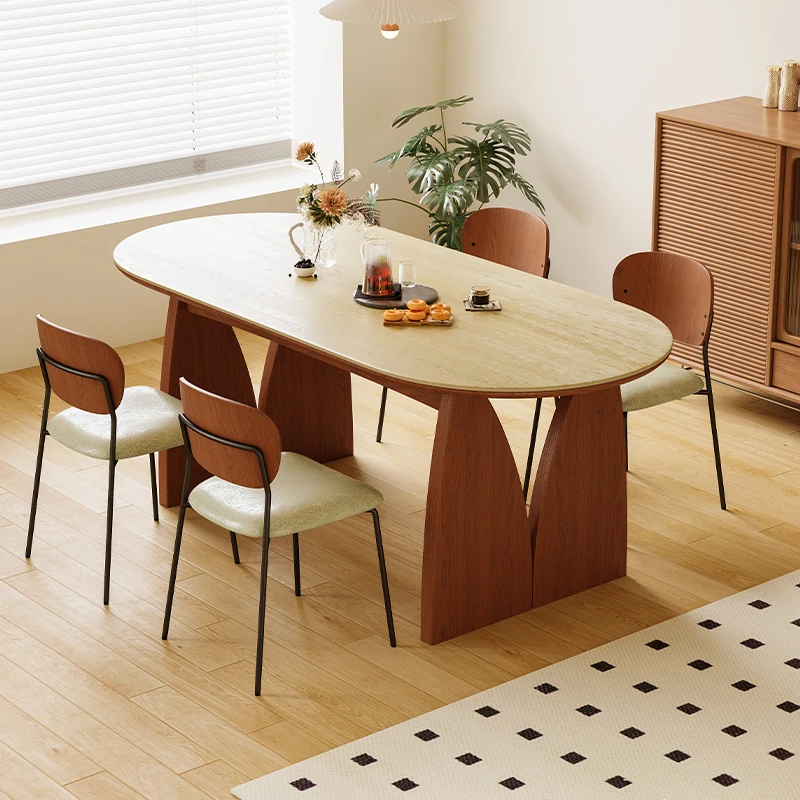 フレンチビンテージスタイルの岩板ダイニングテーブルセット2025新作!小さなスペースにもぴったりなオーバル型、家族や友人との食事を特別に演出します。おしゃれで機能的な食卓を手に入れましょう!