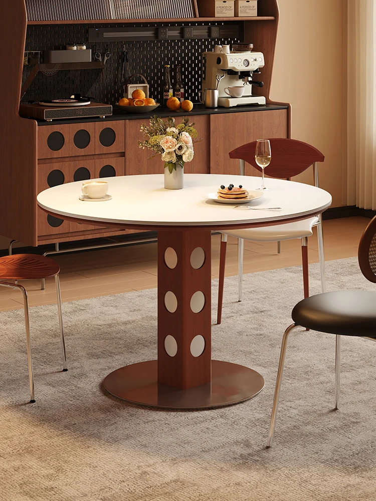 マカリュウビンテージ無垢材ロックボードダイニングテーブル|小スペースに最適!北欧スタイルの丸型テーブルとチェアセットで、心地よい食卓を演出します。