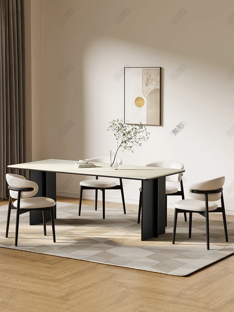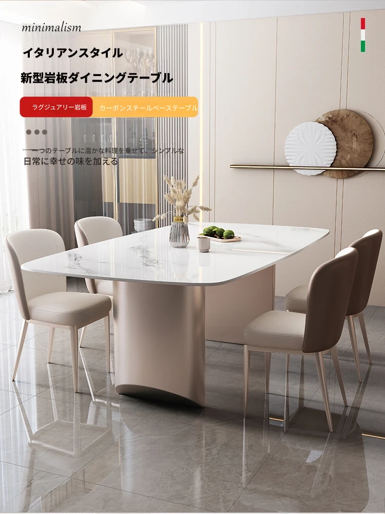 軽奢スタイルのイタリアンストーン製ダイニングテーブル&チェアセット!小型住宅にぴったりのモダンでシンプルなデザイン。トレンディなリビングやダイニングに最適な夕食用テーブルで、おしゃれな空間を演出します。