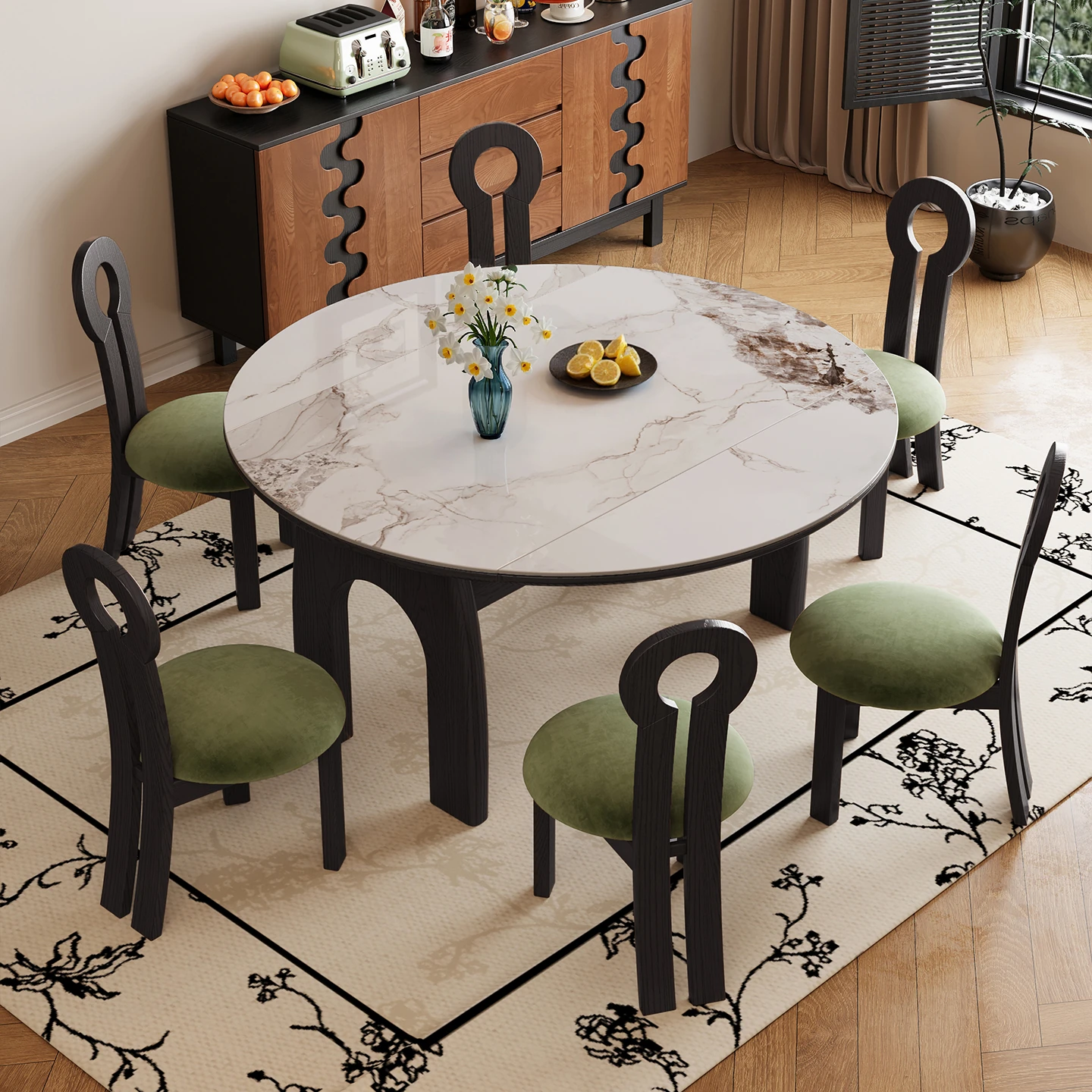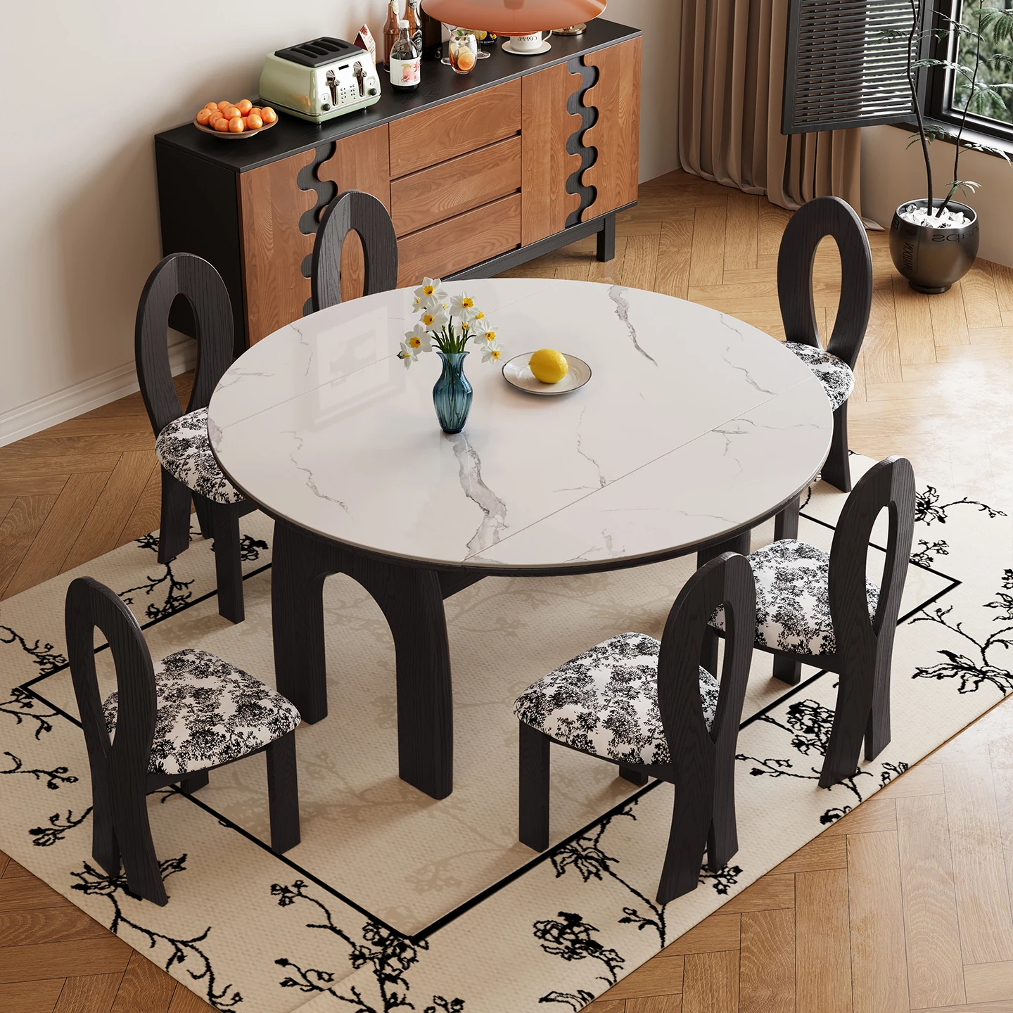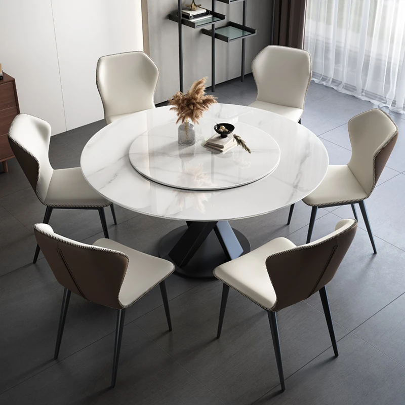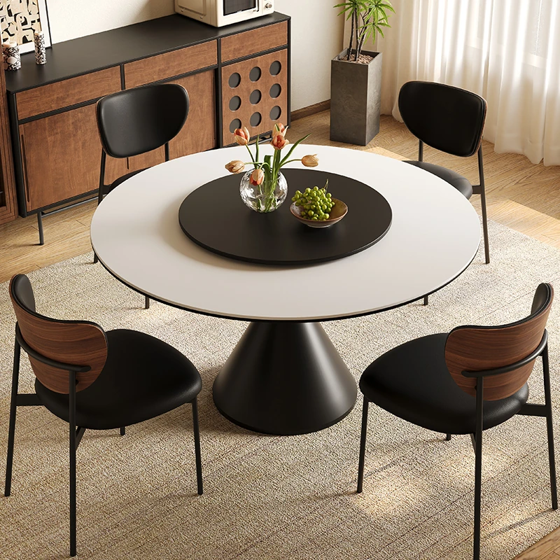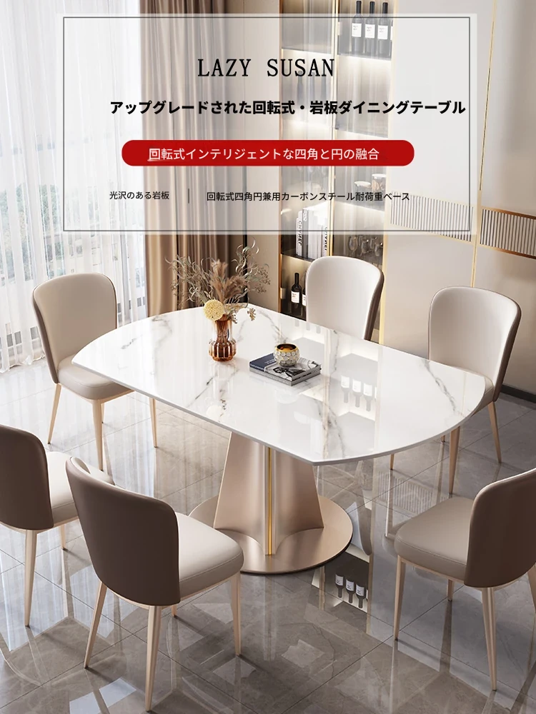洗練されたデザインの光沢仕上げ、軽奢感溢れる岩板ダイニングテーブル&チェアセット。現代的でシンプルなスタイル、小型住宅に最適な回転式ラウンドテーブル。家族や友人との特別な食事を演出します!
