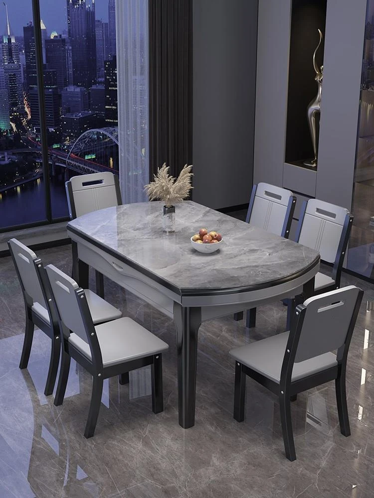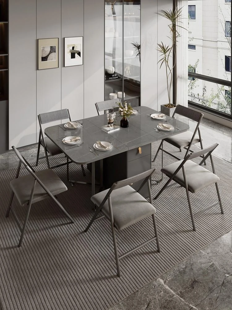 新疆送料無料!光沢のある岩板製ダイニングテーブル&チェアセット。伸縮・折りたたみ可能なモダンミニマリストデザイン。小スペースに最適な高級感溢れる家庭用家具!