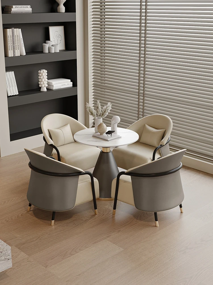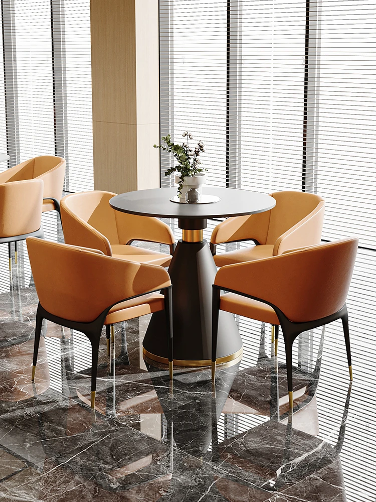 ラグジュアリーな大理石の円形ダイニングテーブルセット|現代的な商談用デザイン、洗練されたスタイルの接待用小テーブル|おしゃれで快適な空間を演出!