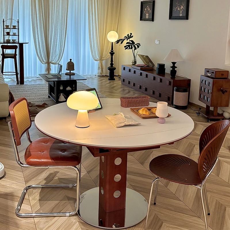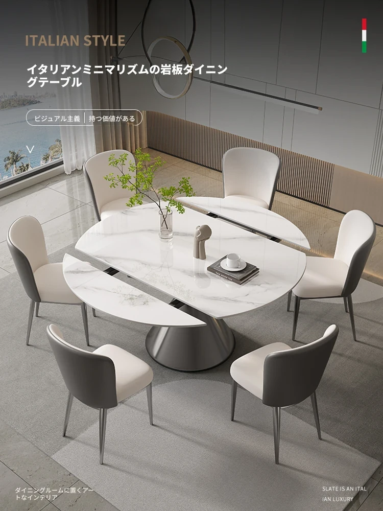 イタリアンラグジュアリー折りたたみ伸縮式岩板ダイニングテーブル - 現代的でシンプルなデザイン、小型住宅にも最適な円形・角形2WAYテーブル!おしゃれで機能的な食卓で、家族や友人とのひとときをお楽しみください。