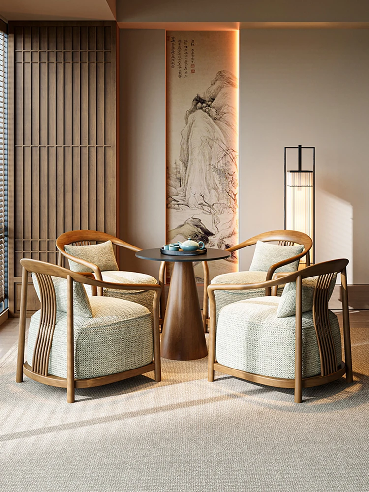 Elegant New Chinese Zen Reception Table and Chair Set - Premium Solid Wood Sofa for High-End Hotels, Clubs, and Tea Rooms. Perfect for Business Meetings and Client Discussions.