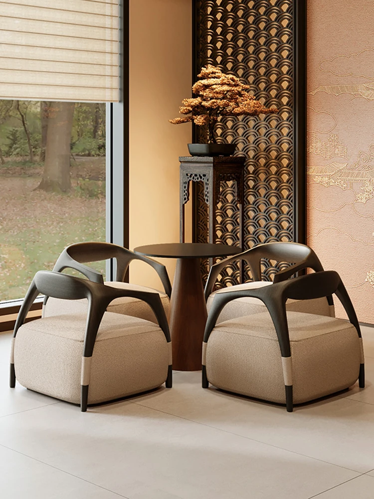 Elegant New Chinese Style Leisure Chair Set - 3-Piece High-End Tea House Reception Furniture for Relaxation and Meetings