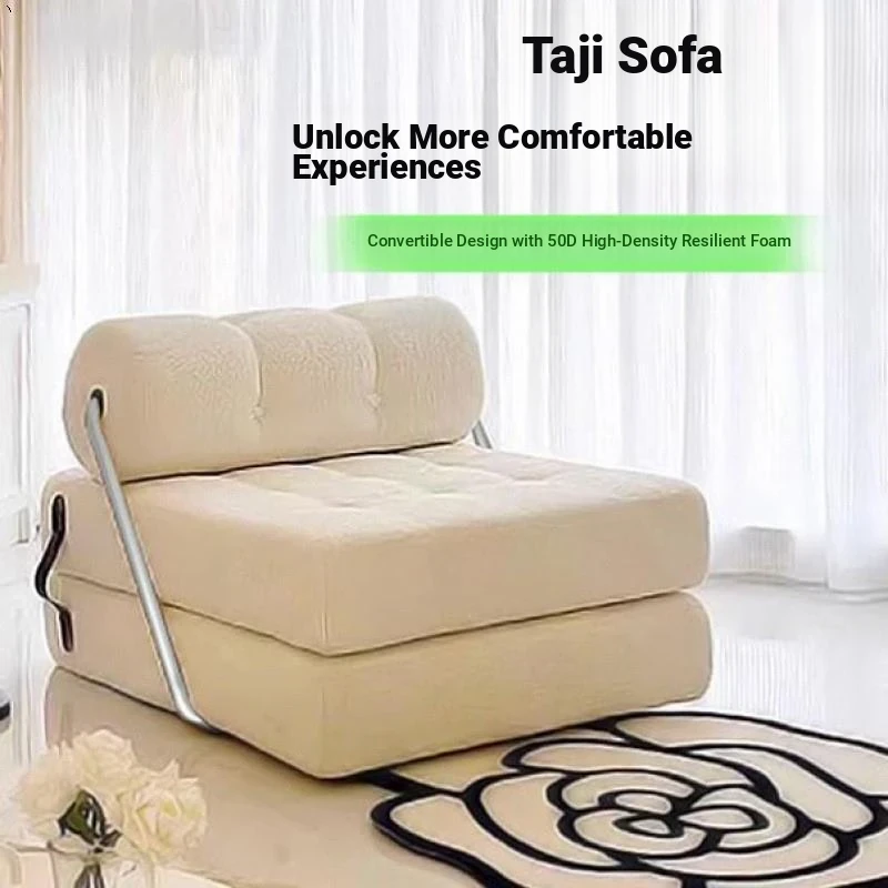 Compact One-Person Sofa Bed for Small Spaces - Versatile Tofu Block Design in Creamy Style, Perfect for Lazy Living Rooms and Multifunctional Use.