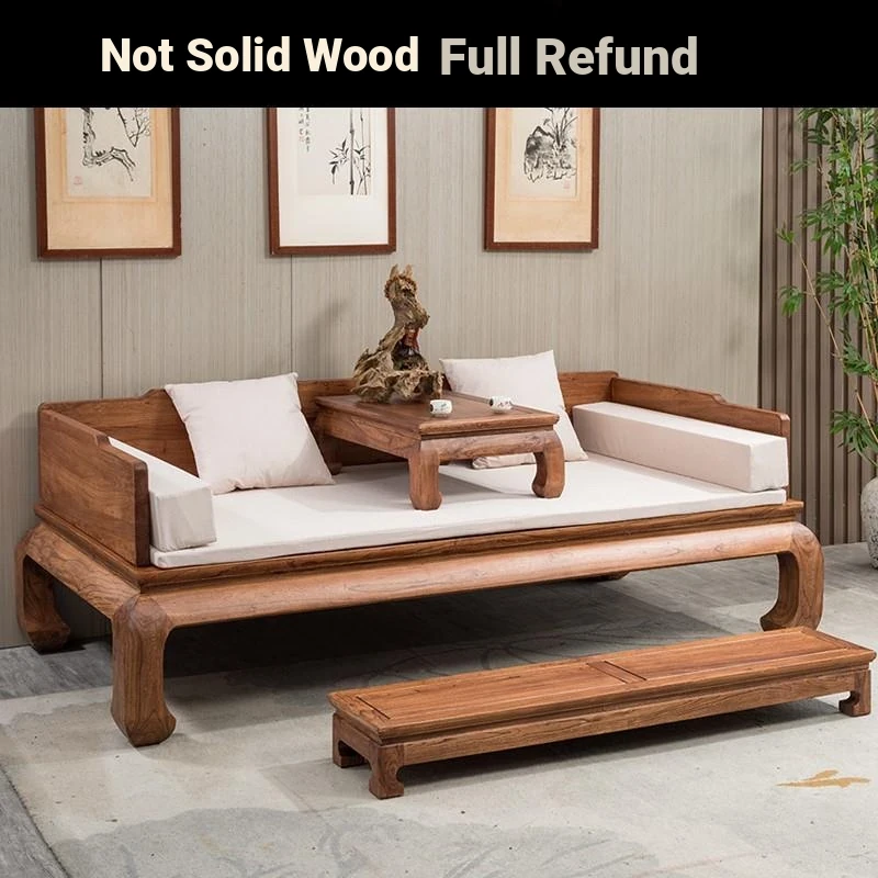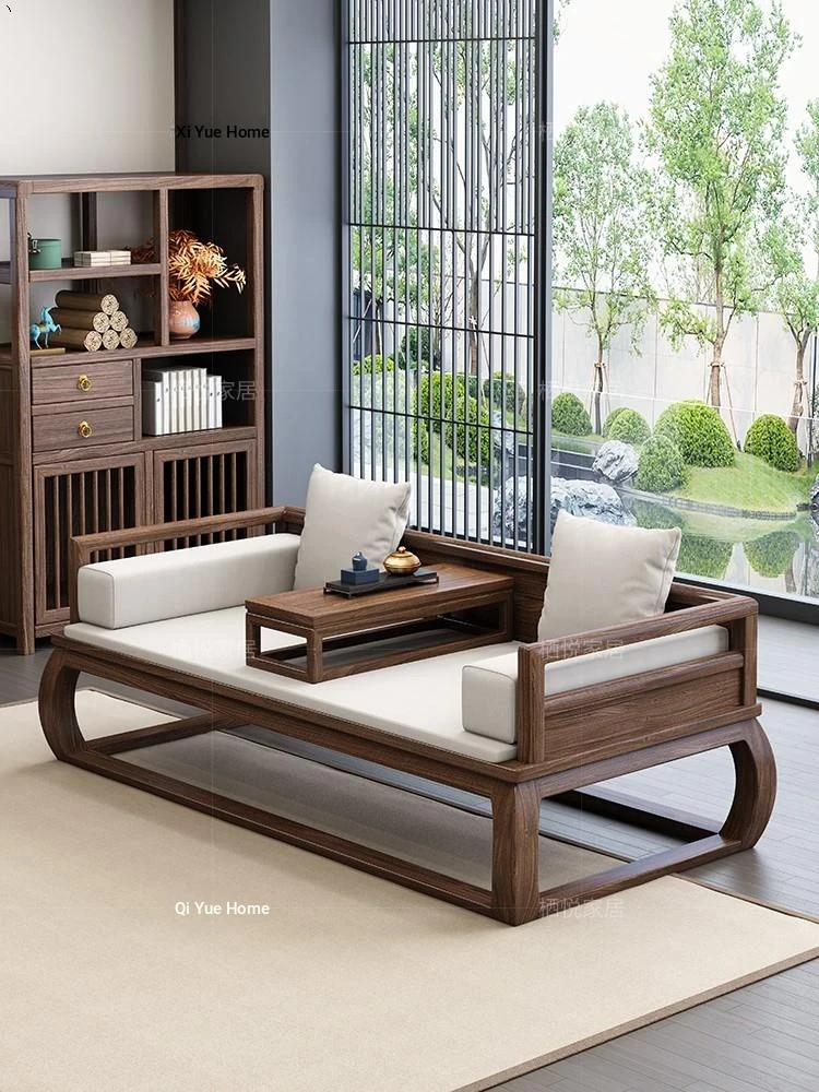 New Chinese Style Solid Wood Luohan Bed - Compact Sofa Bed for Small Living Rooms, Ming and Qing Dynasty Zen-Inspired Chaise Lounge and Recliner