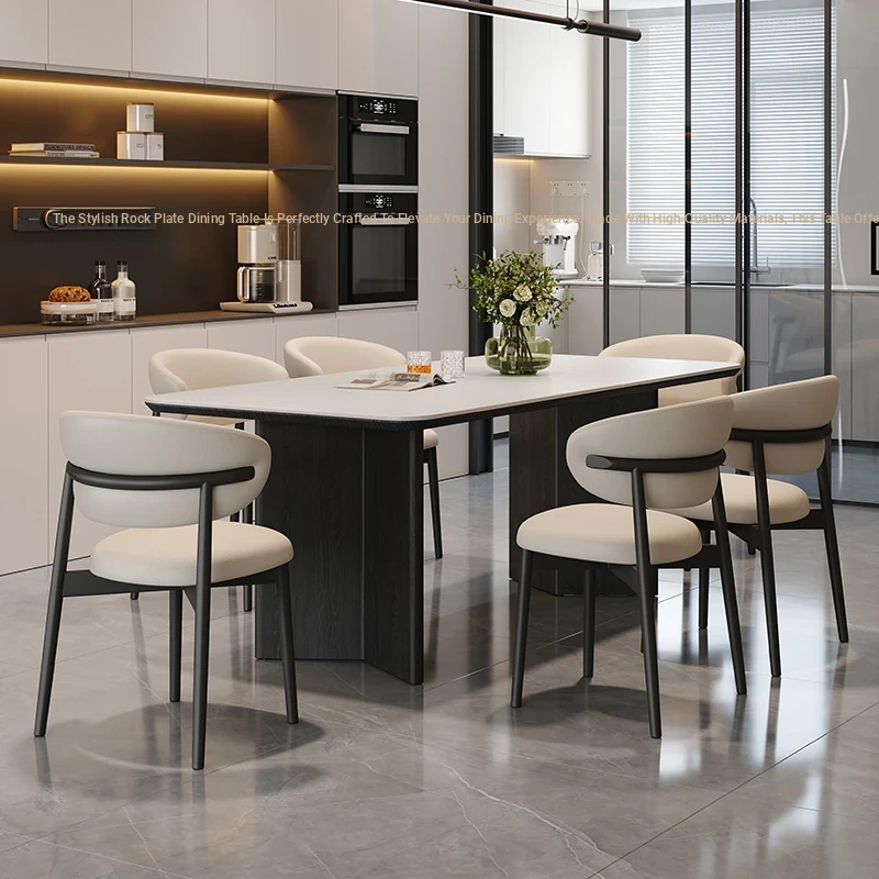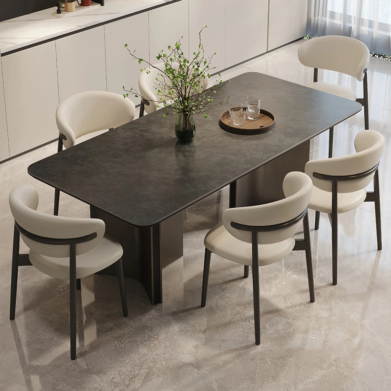 Italian Luxury Rectangular Dining Table and Chair Set - Modern Minimalist Design for Small Spaces, Featuring Ultra-Compact Ceramic Stone for a Chic Dining Experience