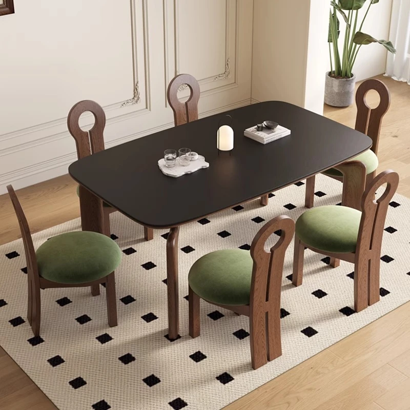 Italian Minimalist Modern Rectangular Dining Table and Chair Set - Vintage Wabi-Sabi Style for Home Use, Walnut Color