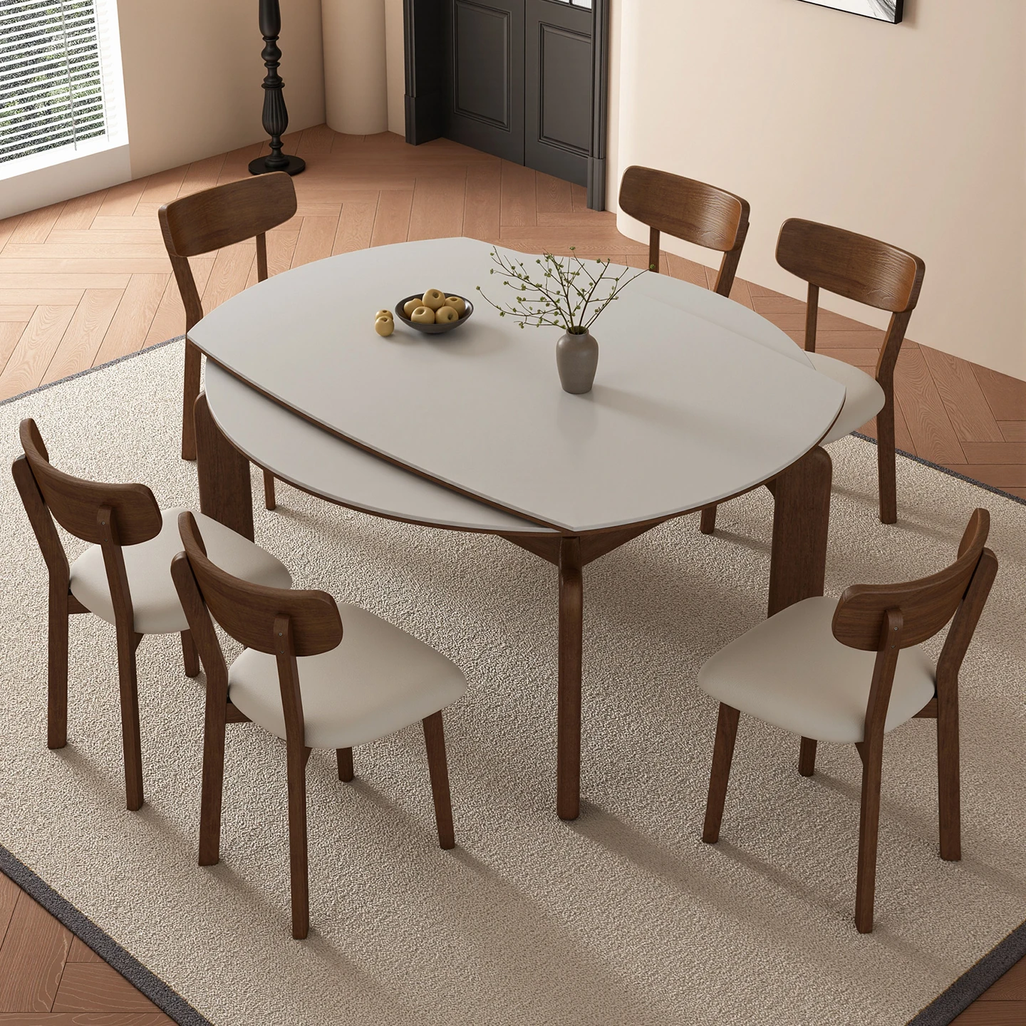 Adjustable Expandable Dining Table - Versatile Round and Square Design for Small Spaces, Modern Minimalist Style with a Touch of Luxury, Perfect for Home Use