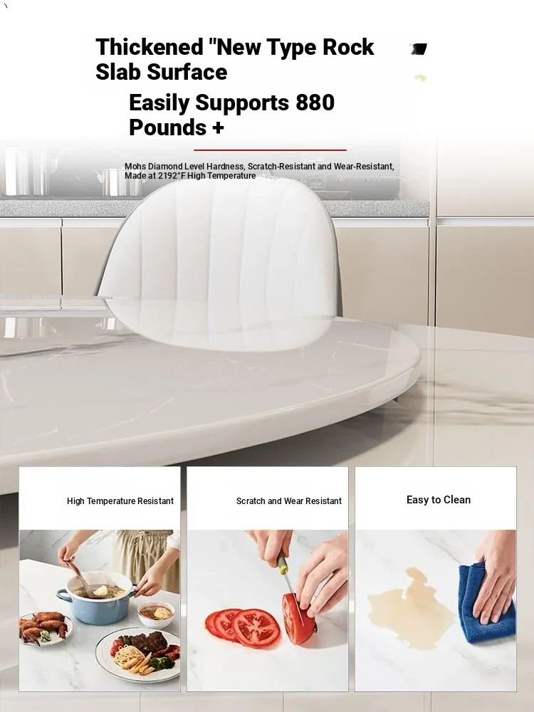 French Cream-Style Rock Plate Dining Table and Chair Set - Modern Minimalist Design for Small Spaces, Perfect for Home Use, New Island Table Combo