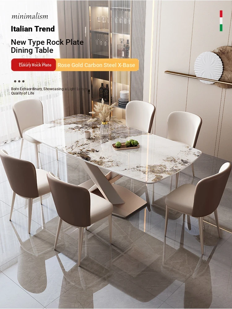 Luxury Italian-Style Dining Table with Full Bottom Support and Hanging Rock Panels - Stainless Steel and Solid Wood, Exuding Elegance and Sophistication for a Chic Dining Experience.