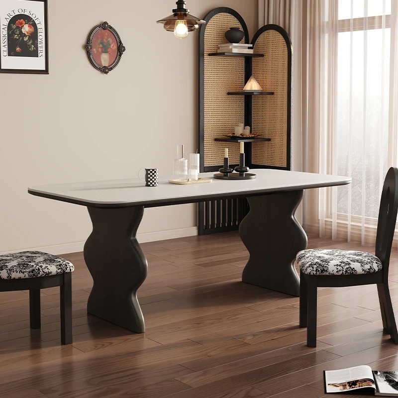 French Vintage Solid Wood Dining Table and Chairs - 2025 New Black Rock Plate Furniture, Cream American Antique Style, Japanese Living Room Décor