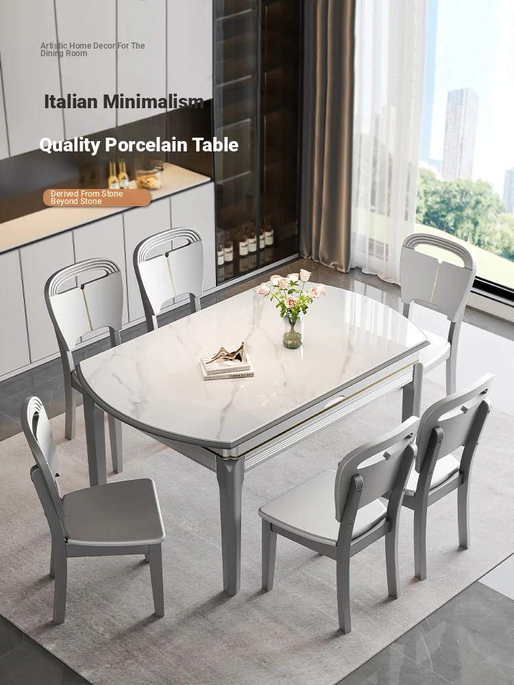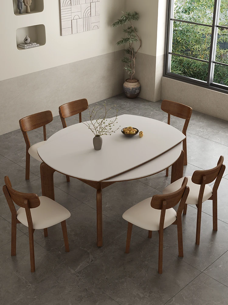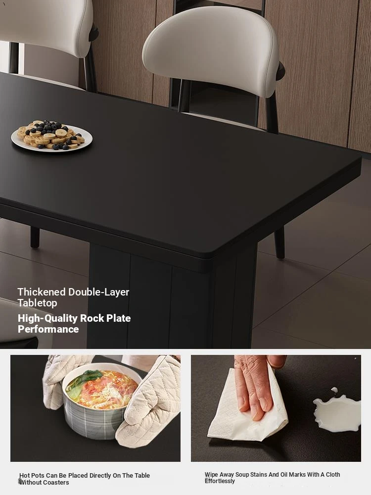 Modern Luxury Rock Plate Dining Table and Chair Set - Compact Rotatable, Expandable, and Foldable Design for Small Spaces, Perfect for Round and Square Use