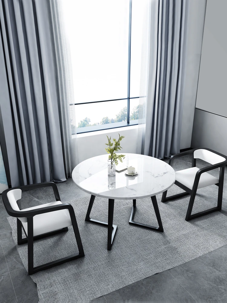 Chic Lightweight Luxury Stone Conference Table and Chair Set – Perfect for Casual Gatherings, Card Games, and Dining at Home or on the Balcony – Stylish Small Square and Round Tables with Comfortable Chairs