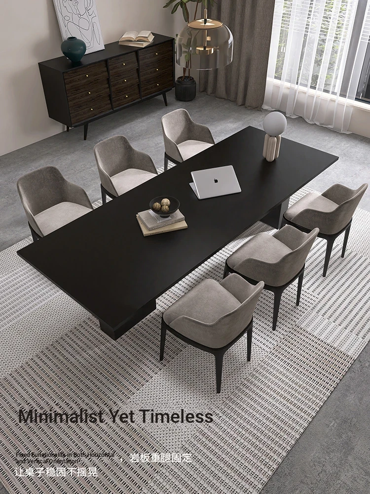 Elegant Minimalist Large Dining Table Set with Rock Slab, Perfect for Upscale Villas - Luxurious Rectangular Home Dining Table and Chair Combination