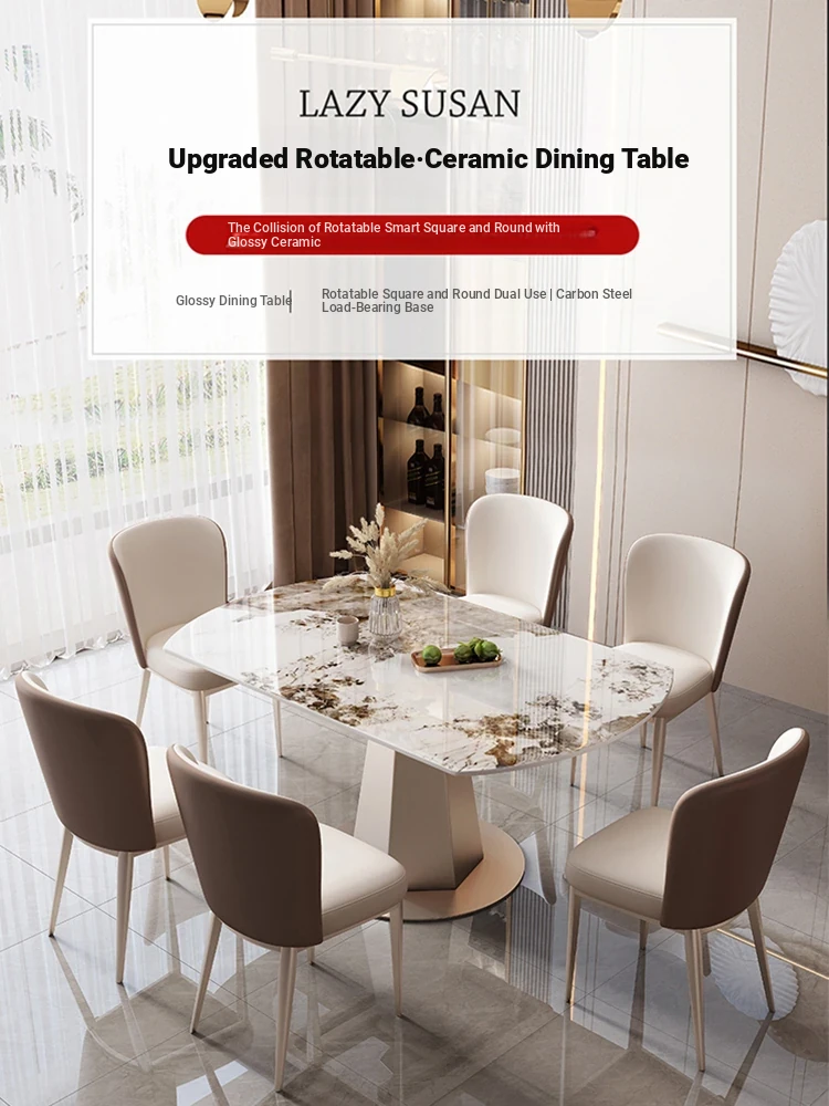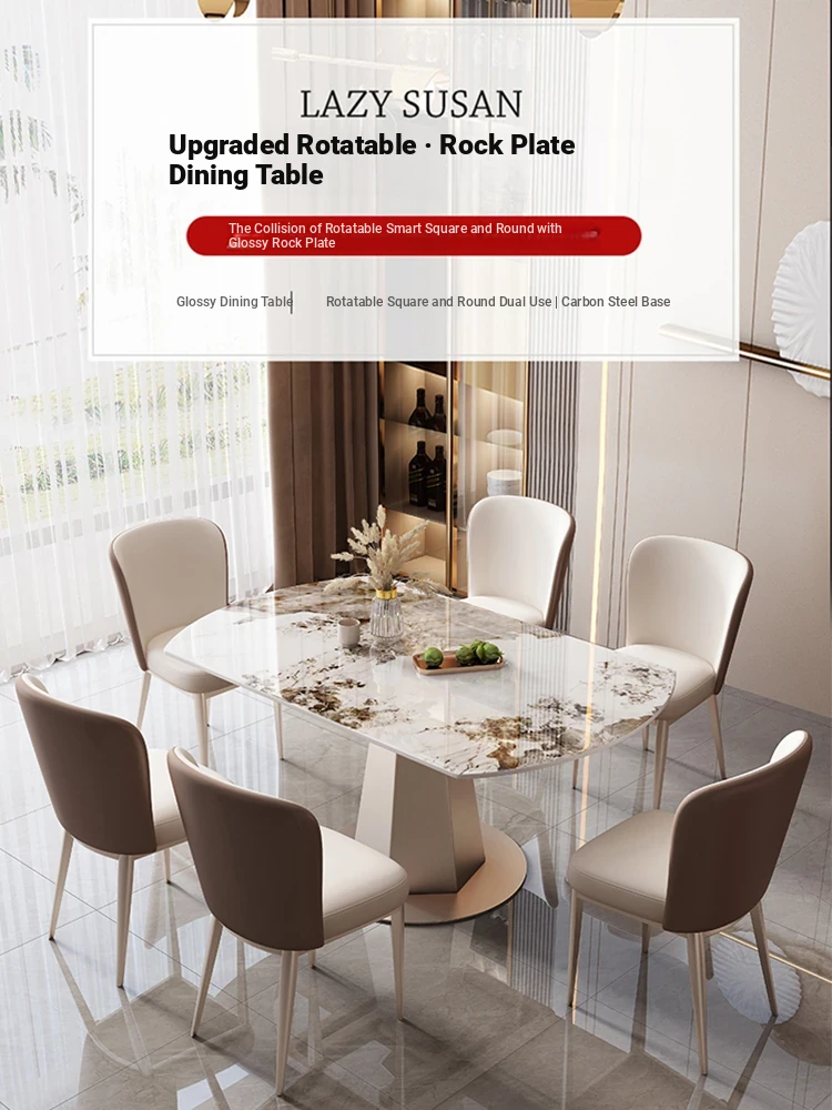 Elegant Glossy Stone Dining Table and Chair Set - Versatile Extendable Square and Round Dining Table for Small Spaces, Perfect for Modern Living Rooms and Western Dining Experiences.