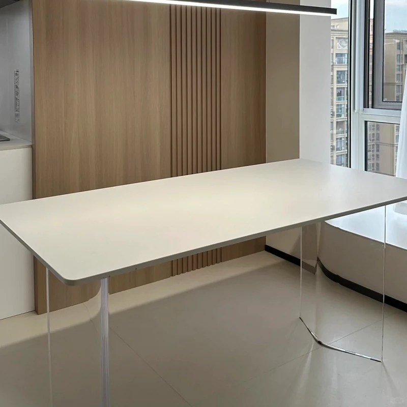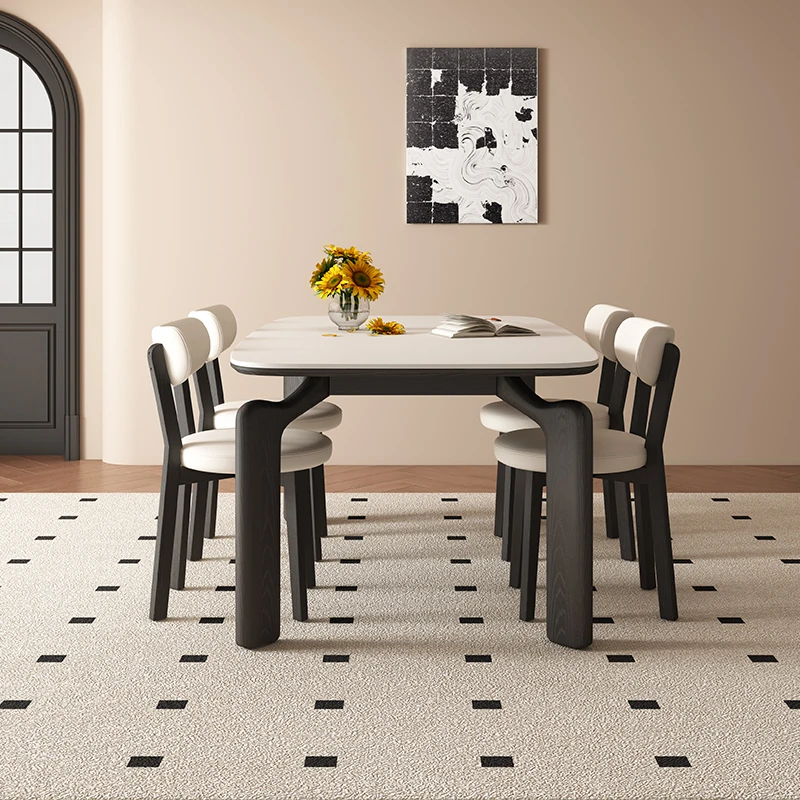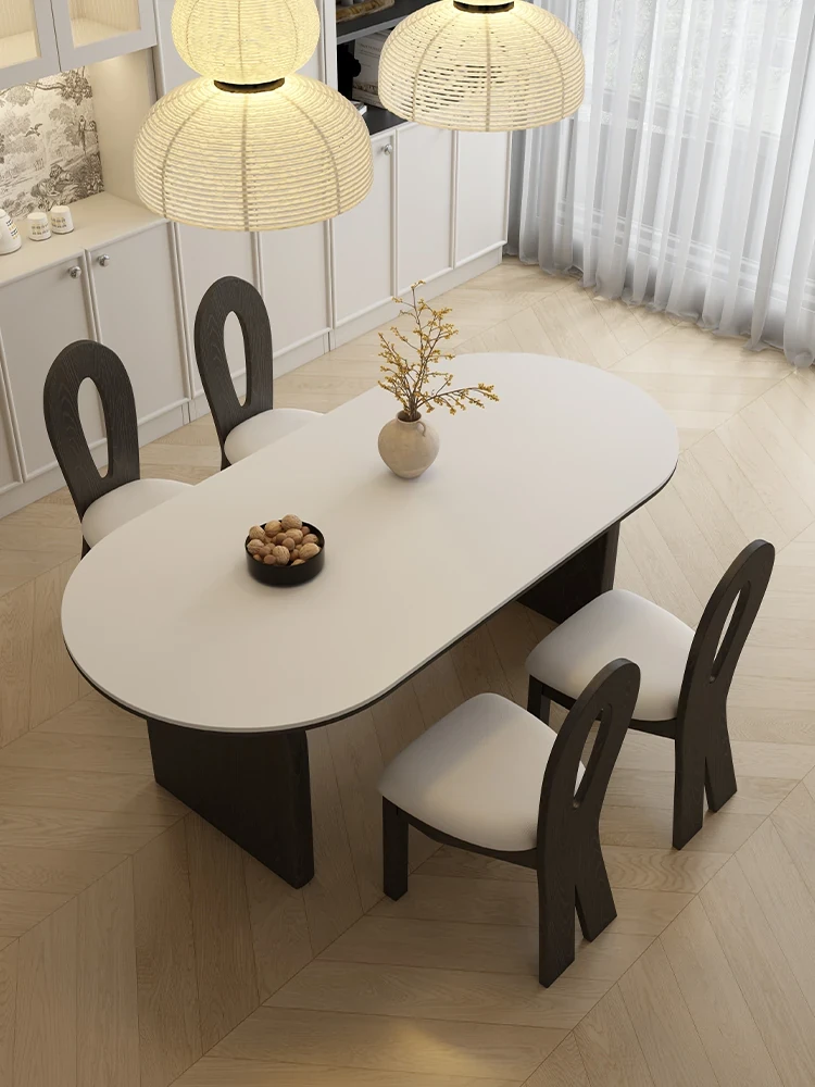 Minimalist Dining Table and Chair Set – Elegant Song Style Aesthetics for Dining Room, Living Room, or Open Concept Spaces – Durable Island Table, Large Desk, and Tea Table with New Rock Board Design