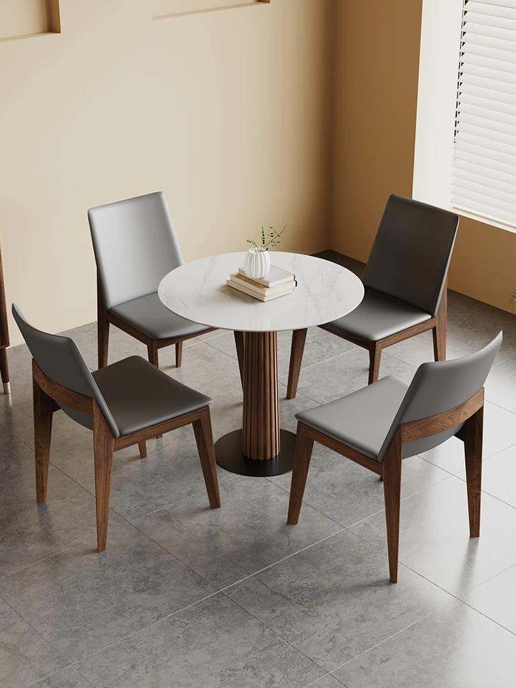 Elegant French Style Walnut Solid Wood Round Dining Table Set - Perfect for Living Room, Reception, and Balcony. Includes Cozy Chairs and a Charming Small Coffee Table for an Inviting Atmosphere.