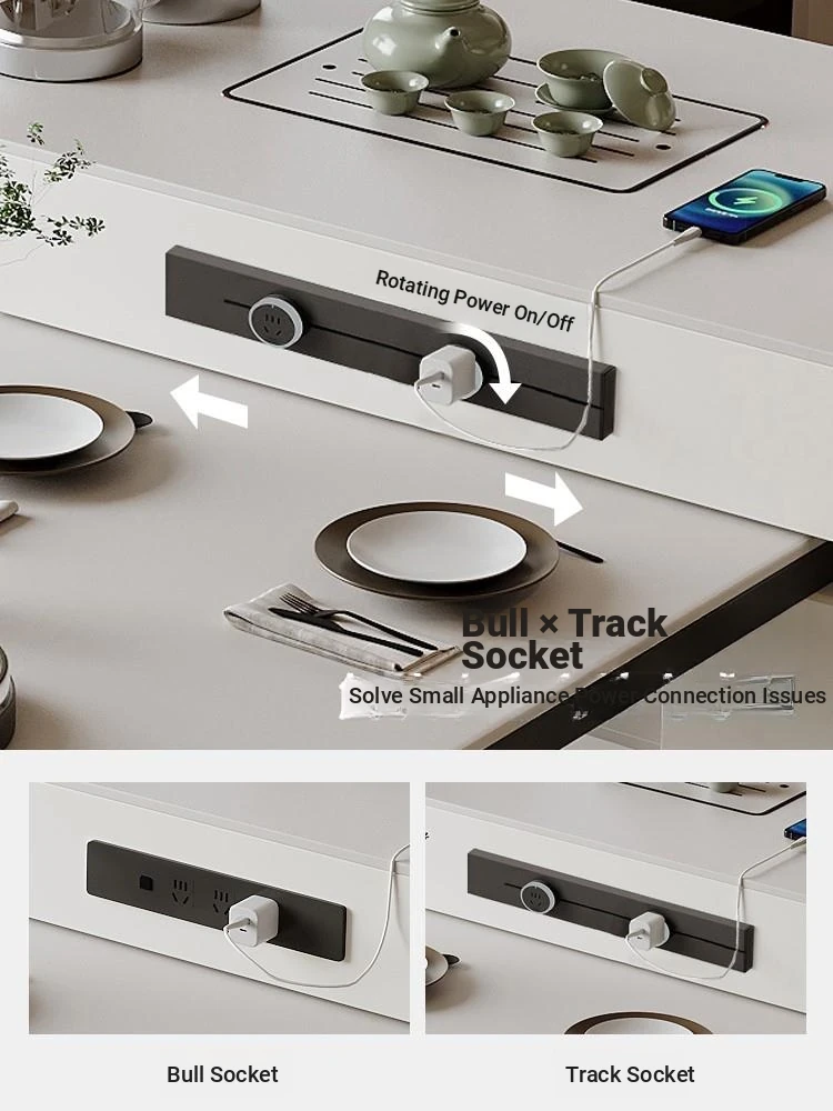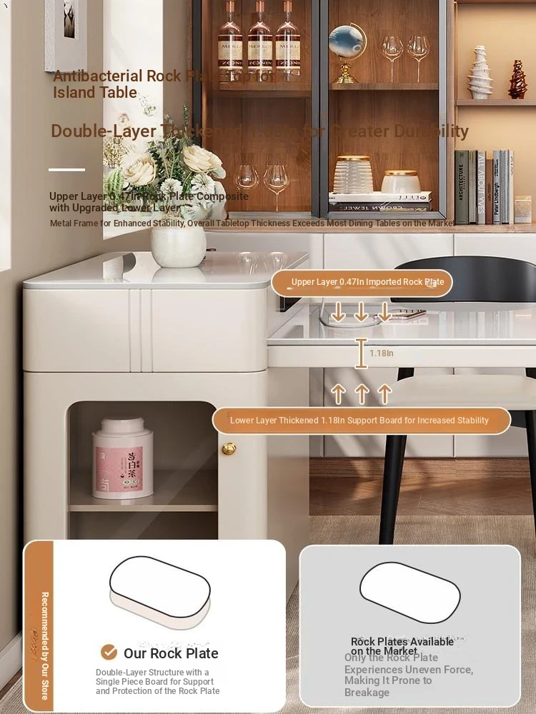 Modern Minimalist Expandable Dining Table Set with Rock Slab Island Design - Ideal for Small Spaces, 2025 New Collection, Perfect for Home Living Rooms, Blending Luxury with Functionality.