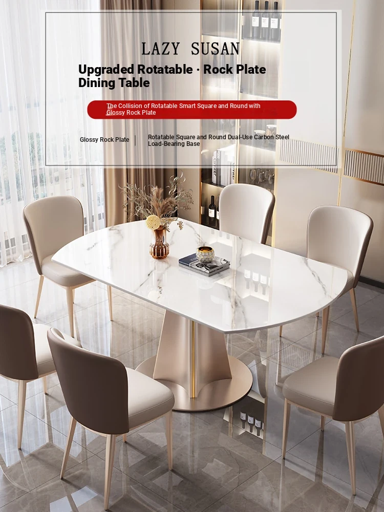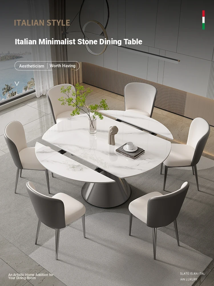 Modern Minimalist Luxury Rock Plate Dining Table and Chair Set – Space-Saving Rotatable and Expandable Round Table for Small Living Rooms