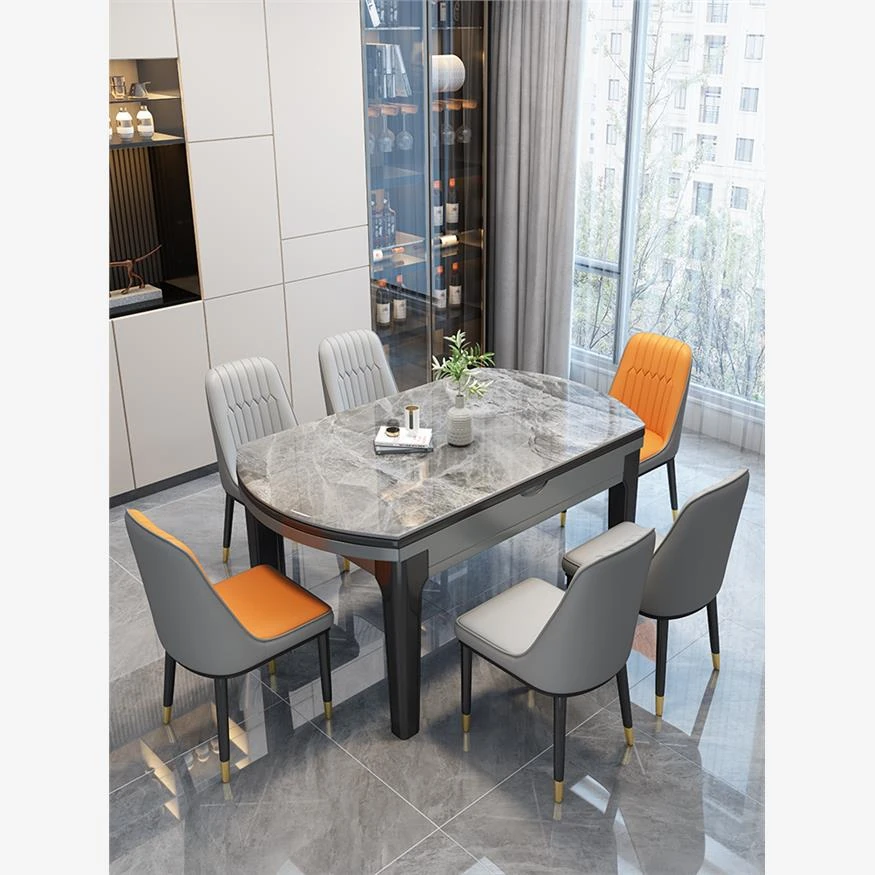 Modern Italian Light Luxury Glossy Rock Dining Table and Chair Set – Space-Saving Rotatable and Expandable Dining Table for Small Homes