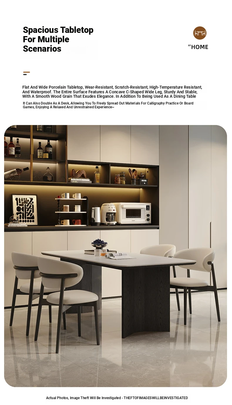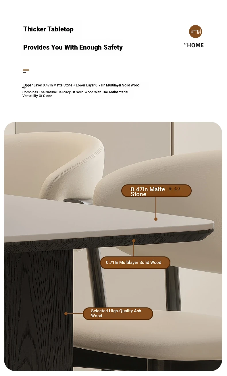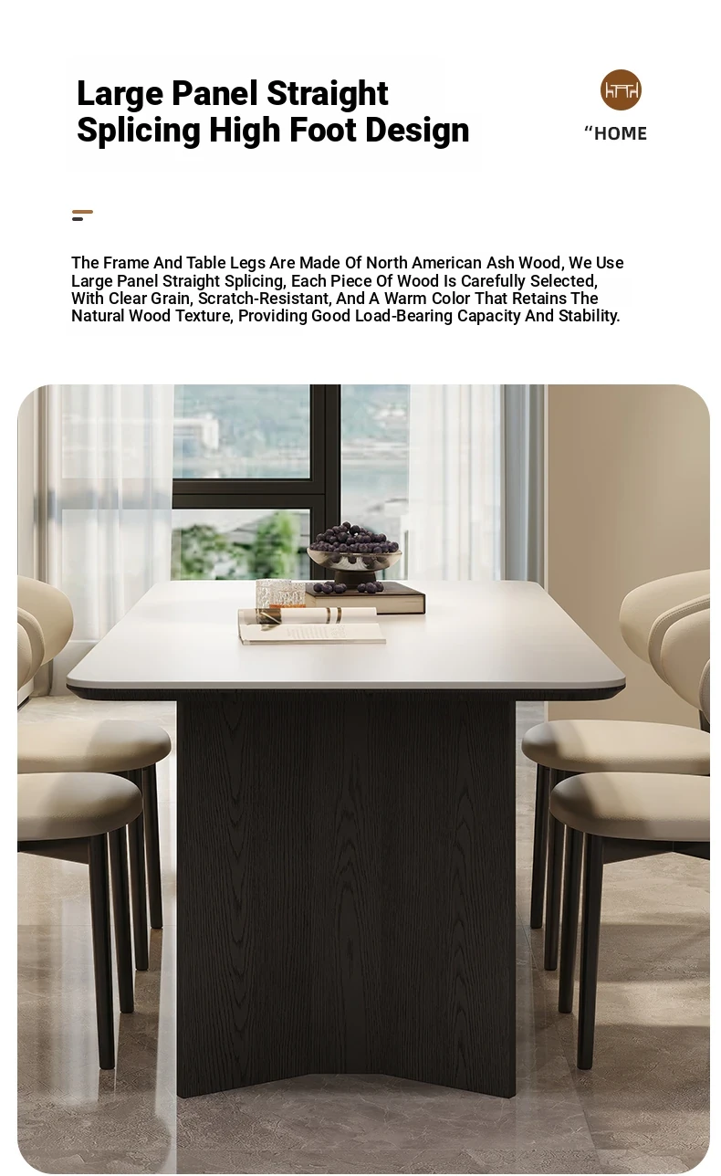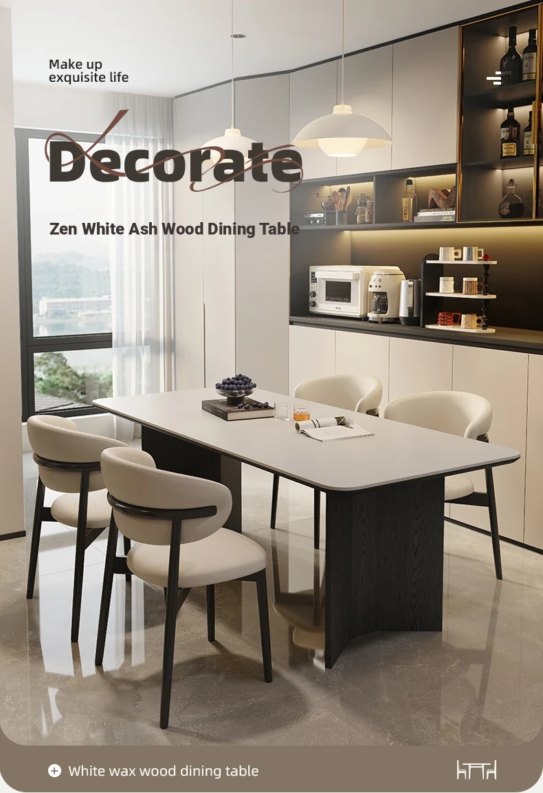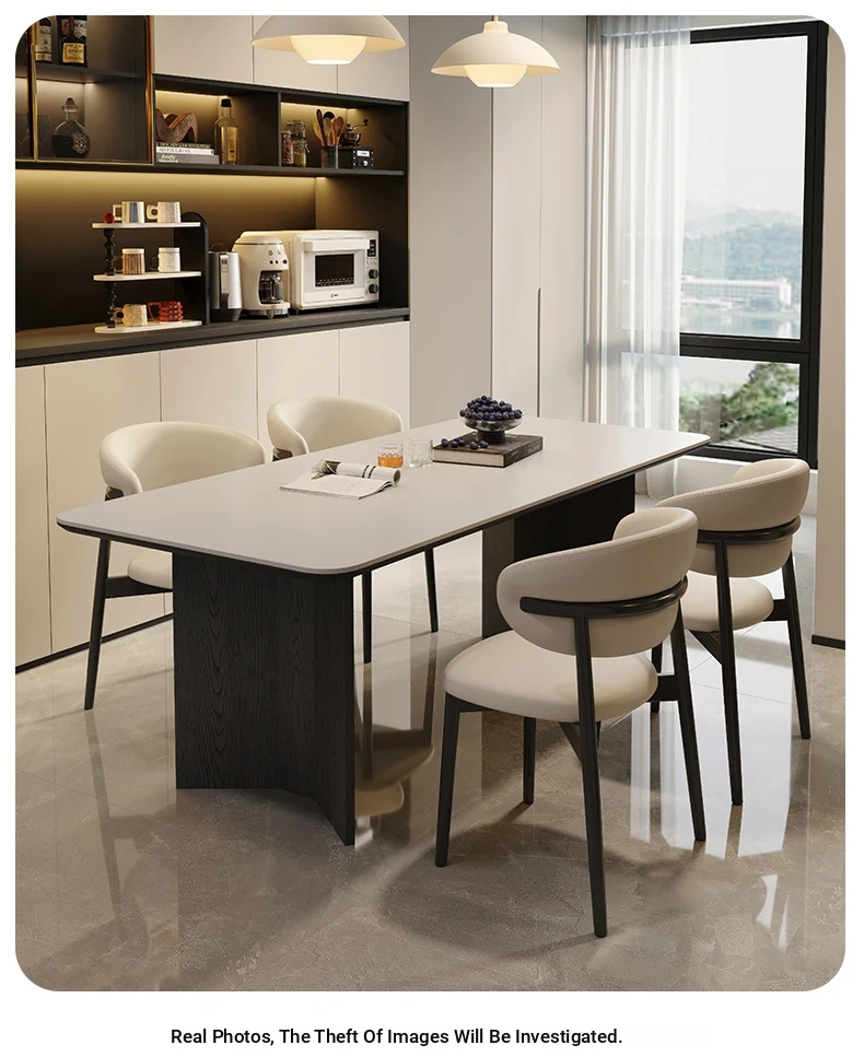 2025 New Elegant Luxury Dining Table Set - Modern Minimalist French Style Rock Plate Dining Table for Small Spaces with Ash Wood Chairs
